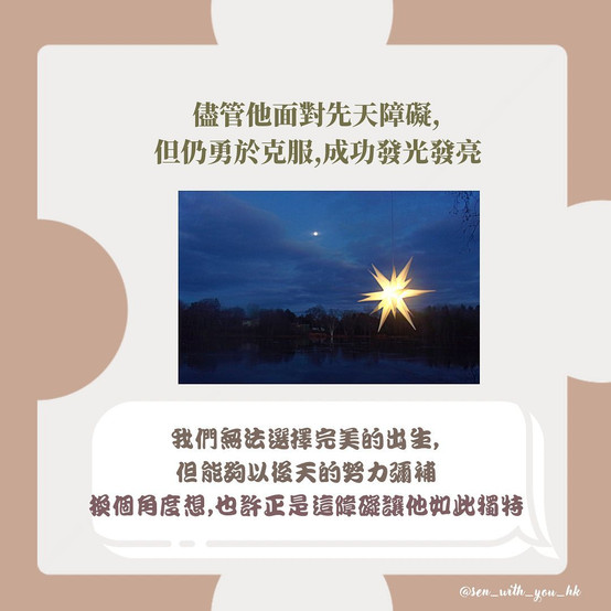 儘管他面對先天障礙,但仍勇於克服,成功發光發亮✨